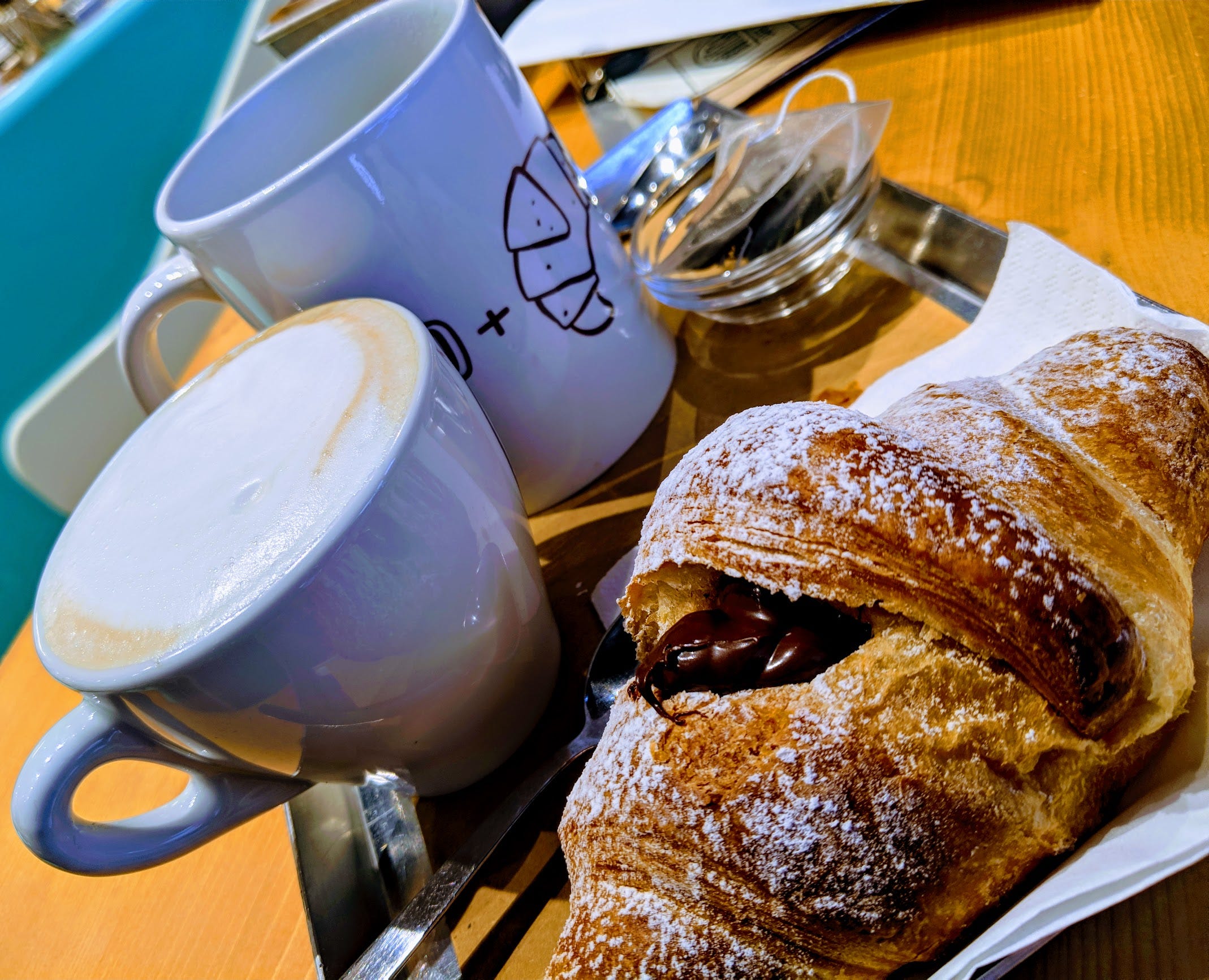 - Breakfast here is coffee and cornetto (croissant, stuffed with nutella / chocolate / crema / something). You can find other stuff to eat, but, frankly, you should save up the space for lunch 😜